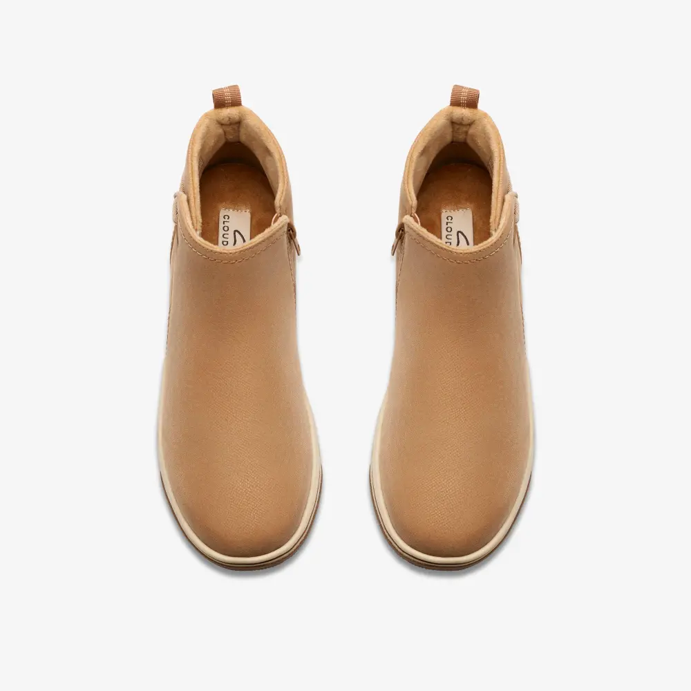 - Obermaterial aus weichem, kamelfarbenem Textil