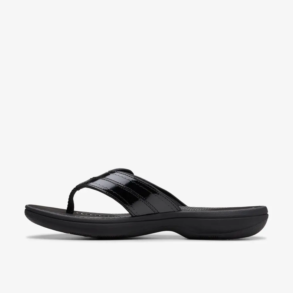 Der Flip-Flop Breeze Reyna ist neu in unserer Cloudsteppers™ Kollektion. Amerikas beliebtester Flip-Flop ist zurück – mit neuem Look und dem gewohnten Tragekomfort des Breeze Sea. Er ist perfekt für warme Urlaubsreisen und aktive Tage. Das schwarze Obermaterial aus Lackleder sorgt für ein angenehmes Tragegefühl, während die griffige Sohle sicheren Halt und ein leichtes Laufgefühl bietet.