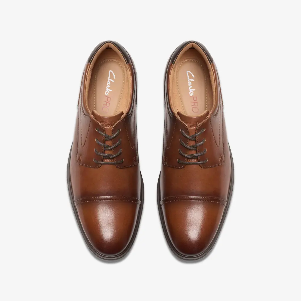 Der Eldredge Cap ist der Inbegriff formeller Eleganz. Sein Clarks PRO-Fußbett bietet optimalen Halt an langen, anstrengenden Tagen. Glattes Leder mit aufwendigen Ziernähten verleiht ihm einen zeitlosen Look, während die leichte und federnde Clarks PRO-Dämpfung für ein federleichtes Tragegefühl sorgt. Dank der rutschfesten Gummisohle sind Sie mit diesem Schuh sowohl in Meetings als auch bei geselligen Treffen nach der Arbeit bestens gerüstet.