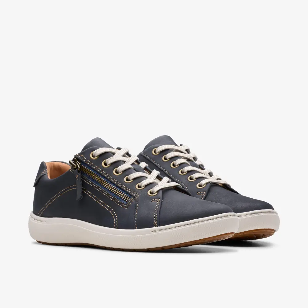 Mit dem Nalle Lace genießen Sie ein federleichtes Tragegefühl. Das geschmeidige Obermaterial aus marineblauem Nubukleder vereint sportlichen Stil mit der legendären Handwerkskunst von Clarks und macht diesen modernen Sneaker zum idealen Begleiter für einen aktiven Lebensstil. Das stützende Contour Cushion-Fußbett und die griffige Gummisohle sorgen für optimalen Tragekomfort, auch an anstrengenden Tagen.