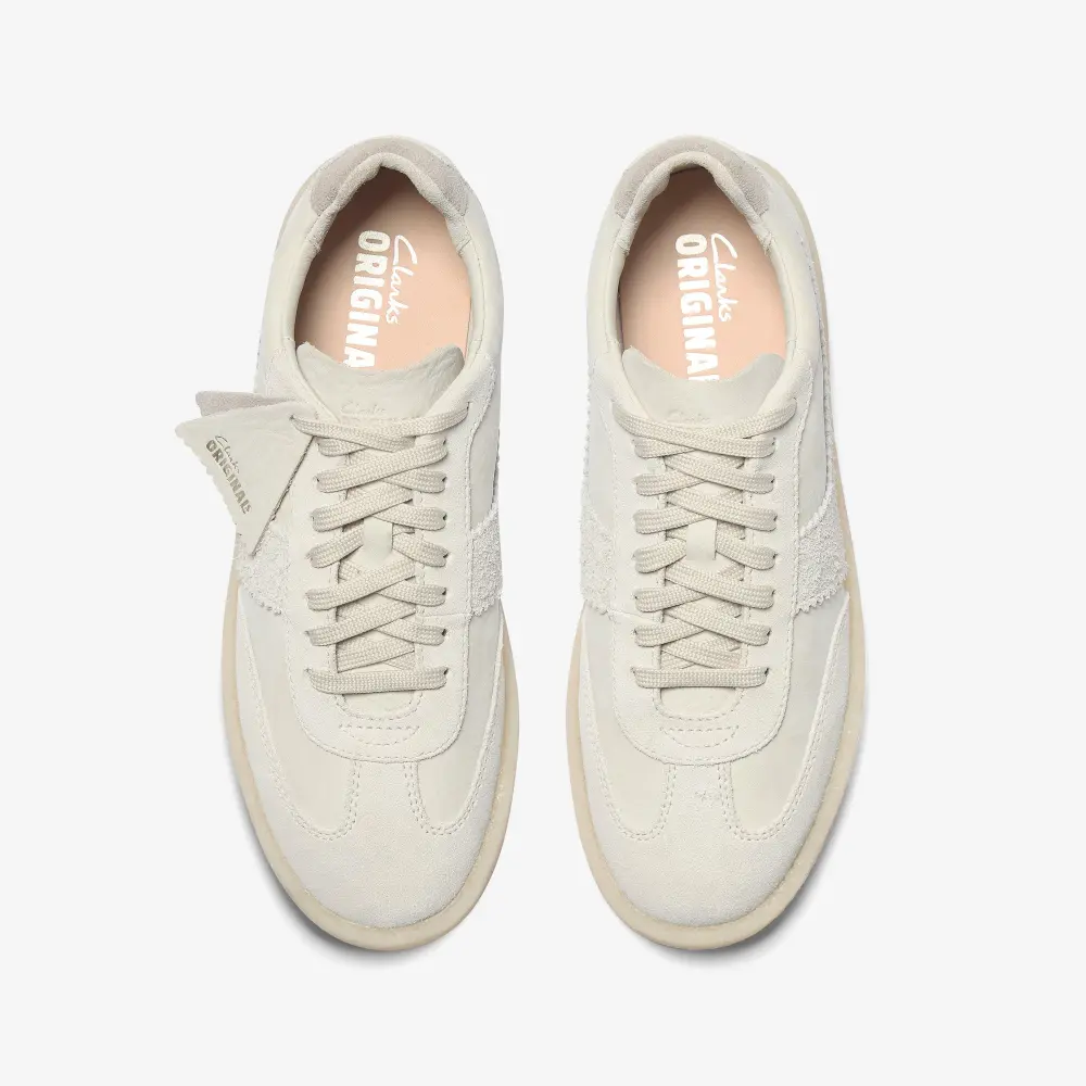 Der aus weichem Veloursleder gefertigte Freizeitsneaker Tor 80 interpretiert den klassischen Sportschuh auf hochwertige Weise. Unsere legendäre Kreppsohle aus Naturkautschuk verleiht ihm einen authentischen, handgefertigten Look, der nur von Clarks Originals stammen kann. Abgerundet wird das Design durch unsere charakteristischen Logo-Anhänger – einer mit einem metallischen Clarks Originals Logo, der andere mit einer grafischen Darstellung unseres Wahrzeichens, dem Glastonbury Tor.