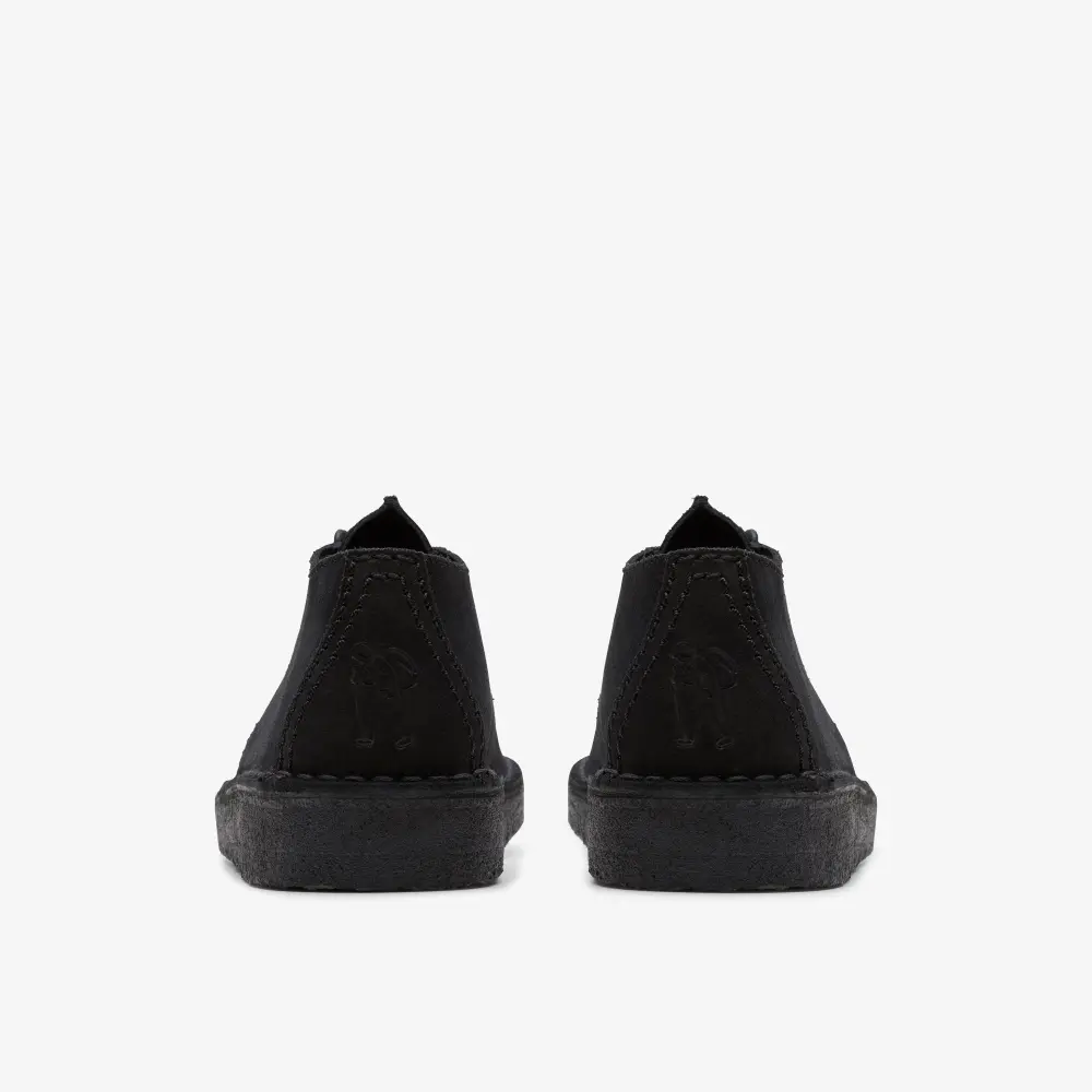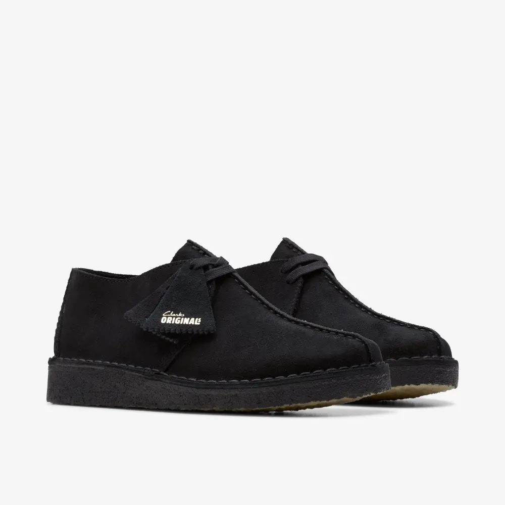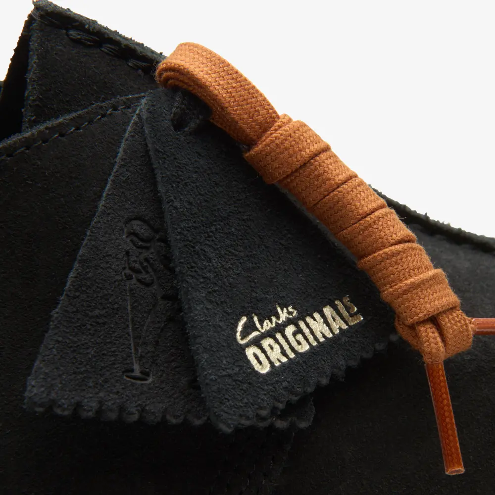 Der Desert Trek, eine Ikone für jeden Tag, kehrt in zeitlosem Schwarz zurück und ist bereit für eine Saison voller vielseitiger Stylingmöglichkeiten. Das butterweiche Wildleder-Obermaterial bildet einen perfekten Kontrast zur Kreppsohle, während flache Schnürsenkel und unsere klassischen Anhänger für einen lässigen Look sorgen.