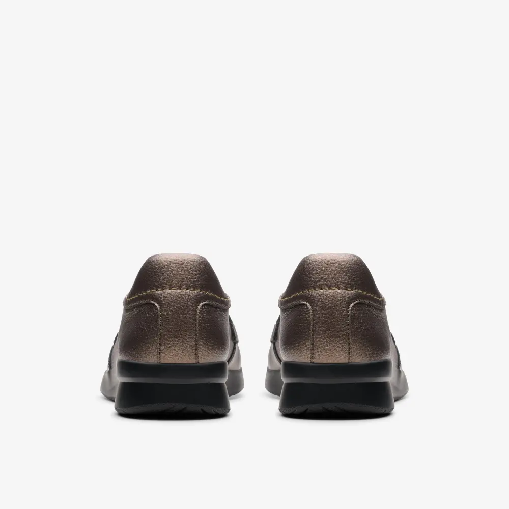 Der Slipper Ellowyn Penny kommt in einem vielseitigen Metallic-Bronze-Ton und passt zu jedem Look. Die griffige, keilförmige Gummisohle sorgt für ein flexibles und freies Laufgefühl, während das superweiche Schaumstoff-Fußbett den Tragekomfort bei jedem Schritt erhöht. Ein bewährter Favorit – der klassische Loafer sieht in dieser Saison besser aus denn je.