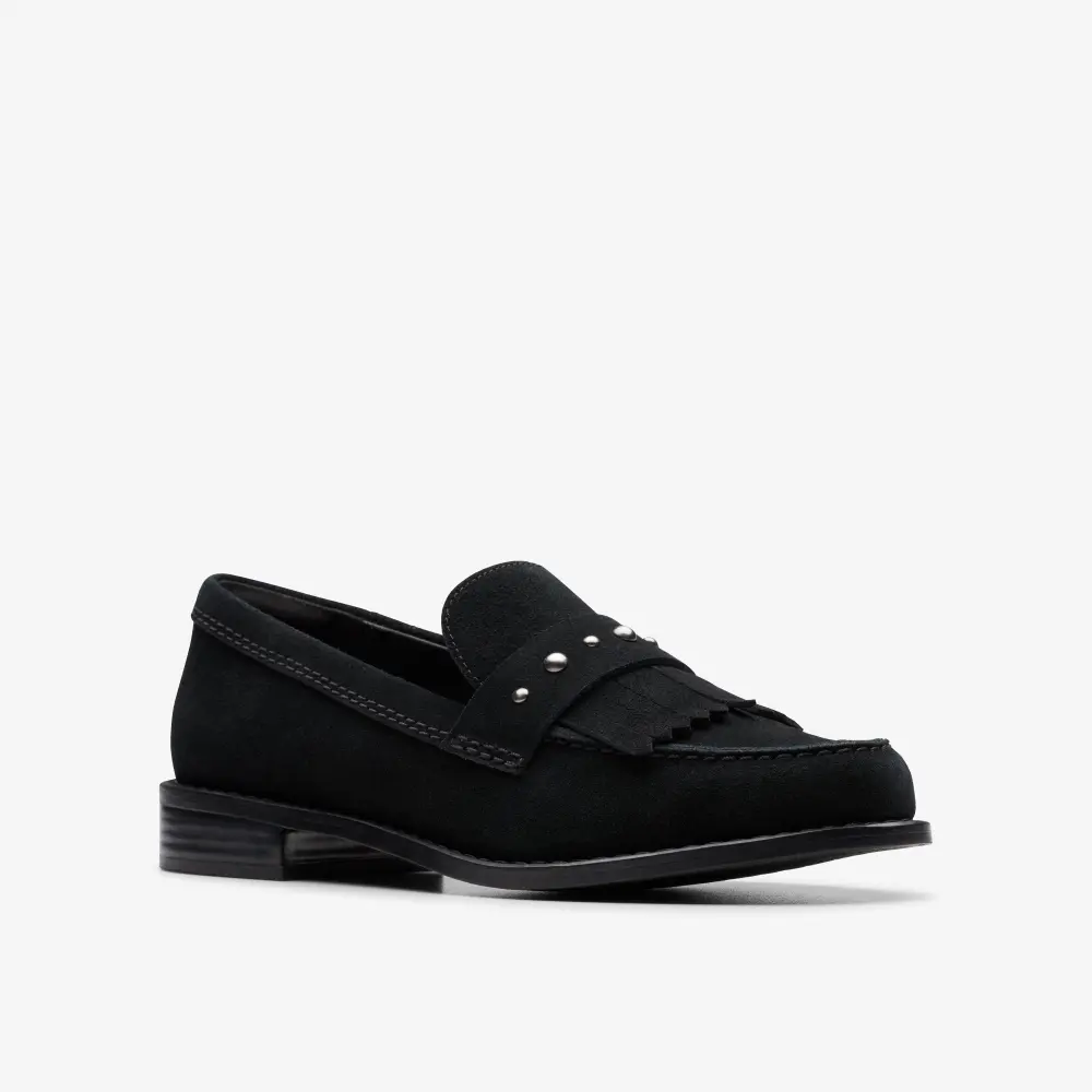 Der elegante Hana Loafer vereint weiches Wildleder mit Ziernieten und trendigen Fransen zu einem modernen, hochwertigen Look, der jedes Outfit aufwertet. Unsere charakteristische, ledergefütterte Polsterung sorgt zusammen mit der flexiblen Sohle und dem praktischen Slip-on-Design für optimalen Tragekomfort.