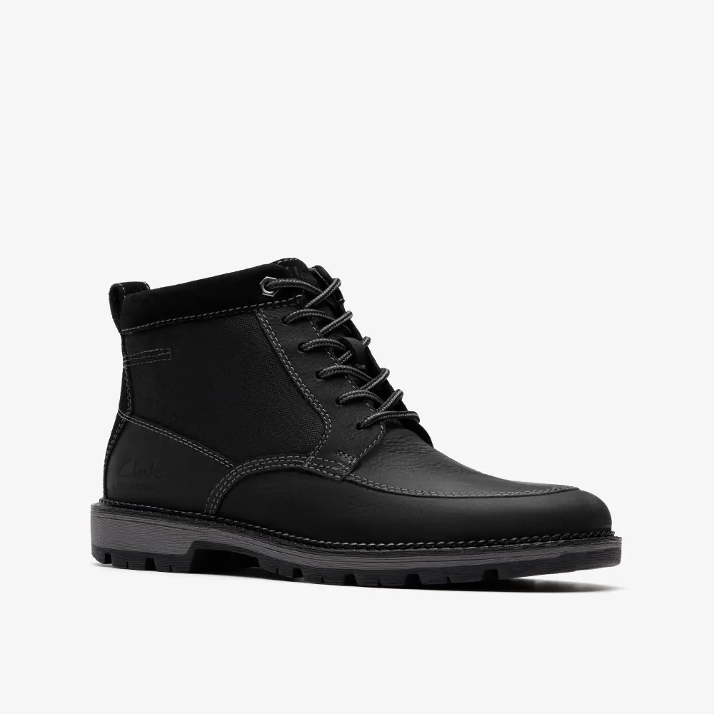 - Hochwertiges, wasserdichtes Obermaterial aus schwarzem Leder und Canvas