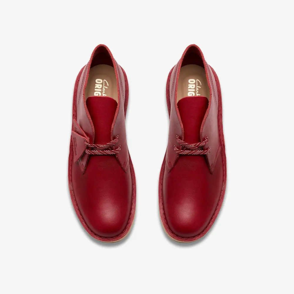 Kulturelles Prestige und Design-DNA: Kein Schuh ist wie der Clarks Originals Desert Boot. In den 50er-Jahren geboren, löste sein minimalistischer, progressiver Stil eine weltweite Schuhrevolution aus – getragen von Beatniks, Mods, Britpop-Bands und jamaikanischen Rude Boys. Und jedes Designdetail ist bis heute dem ersten bahnbrechenden Paar treu geblieben. Die klaren, präzisen Linien des Stiefels werden hier durch hochwertiges dunkelrotes Leder betont und mit einer schlichten Schnürung abgerundet. Die authentische Kreppsohle vervollständigt diese unverwechselbare Silhouette. Sofort erkennbar, für immer ikonisch. Ein echtes Original.