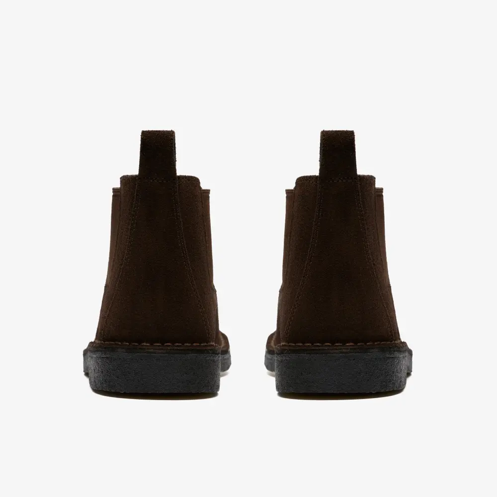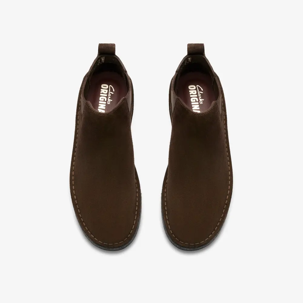 Wir präsentieren den Desert Chelsea, ein faszinierendes Comeback aus der Desert Boot-Familie, der zeitloses Design mit modernen Details vereint. Der bequeme Slipper besticht durch sein Obermaterial aus Steads-Wildleder in drei ikonischen Farbvarianten, die sich mühelos in jedes Outfit integrieren lassen. Durch sorgfältige Anpassungen ist der Desert Chelsea etwas weiter geschnitten, um einen sicheren Stand zu gewährleisten, und hat einen etwas höheren Schaft als das Original, was für eine zeitgemäße Silhouette sorgt. Der Stiefel zeichnet sich durch seine hochwertige, rahmengenähte Konstruktion aus, die Langlebigkeit und erstklassige Verarbeitung unterstreicht. Für optimalen Tragekomfort und Stil sorgen der farblich abgestimmte Fersenriemen und die Anziehschlaufe sowie der elastische Einsatz am Schaft für einfaches An- und Ausziehen. Die natürliche, glatte Kreppsohle mit schwarzem Sohlenspray sorgt für mehr Komfort und Griffigkeit und ist somit ideal für alle Abenteuer des Alltags.