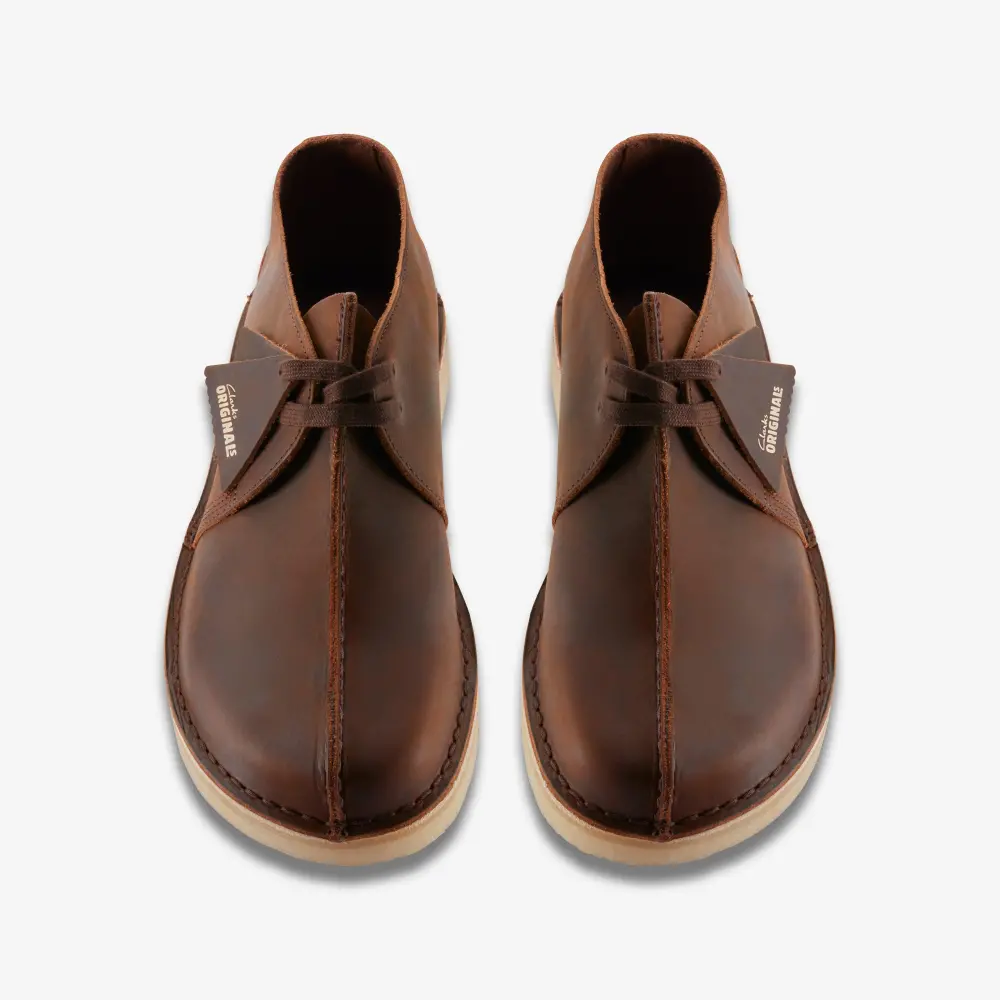 Der Desert Trek, eine Ikone für jeden Tag, kehrt in einem zeitlosen Bienenwachs-Ton zurück und ist bereit für eine Saison voller vielseitiger Stylingmöglichkeiten. Das butterweiche Leder-Obermaterial bildet einen perfekten Kontrast zur natürlichen Kreppsohle, während flache Schnürsenkel und unsere klassischen Anhänger für einen lässigen Look sorgen.