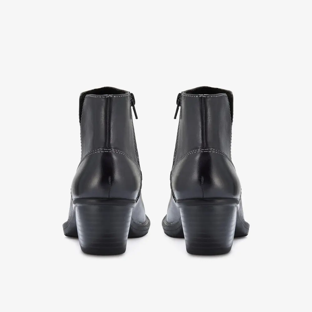Der zeitlose Stiefeletten-Klassiker Kastela Top präsentiert sich in dieser Saison in hochwertigen Materialien. Das charakteristische Contour Cushion-Fußbett bietet optimalen Halt und dämpft jeden Schritt – vom Büro bis zum Wochenende. Der bequeme Blockabsatz verleiht Ihrem Look sofort mehr Eleganz, ohne Kompromisse beim Tragekomfort einzugehen. Obermaterial aus hochwertigem schwarzem Leder. Das vorgeformte Contour Cushion-Fußbett sorgt für unvergleichlichen Tragekomfort. Die flexible TPR-Sohle (thermoplastischer Gummi) bietet optimale Traktion. Absatzhöhe: 57 mm.
