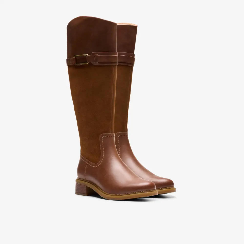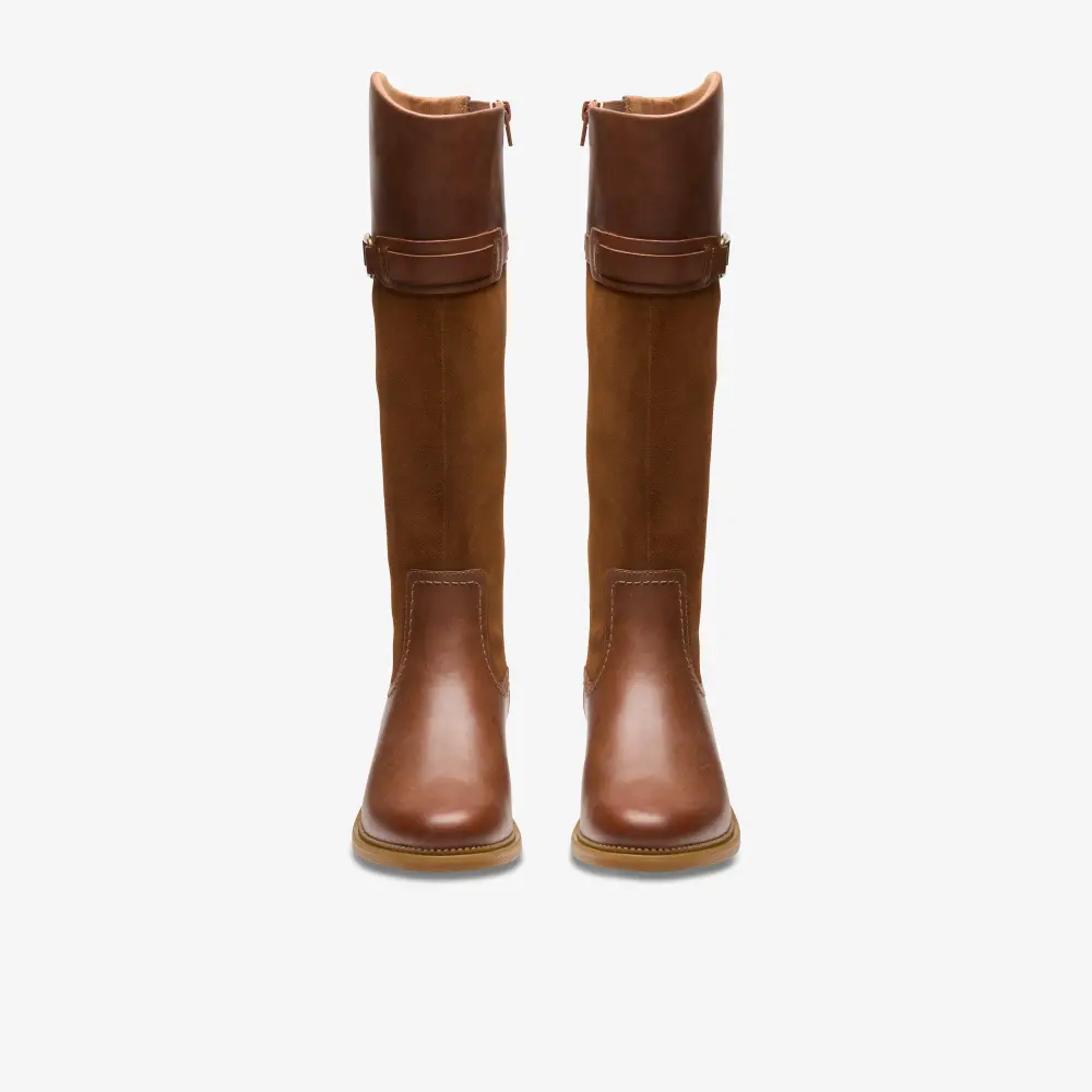 Genießen Sie mühelose Eleganz mit den Maye Carly Stiefeln. Dieses Modell mit hohem Schaft beweist, dass es auf die Details ankommt. Der klassische Stil zeichnet sich durch einen abgerundeten Schaftrand, eine Konstruktion aus zwei Materialien, einen trendigen Blockabsatz und ein goldfarbenes Zierelement aus.