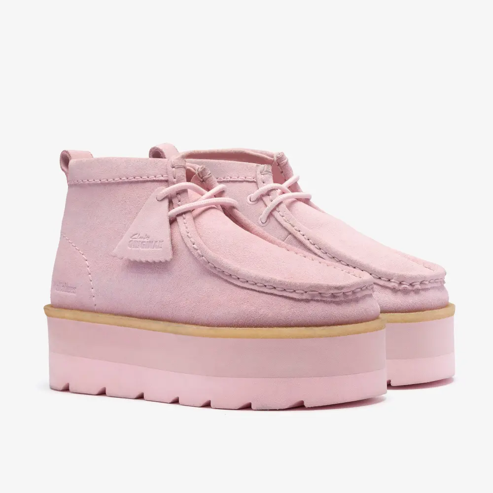 - Obermaterial aus hochwertigem, hellrosa Wildleder