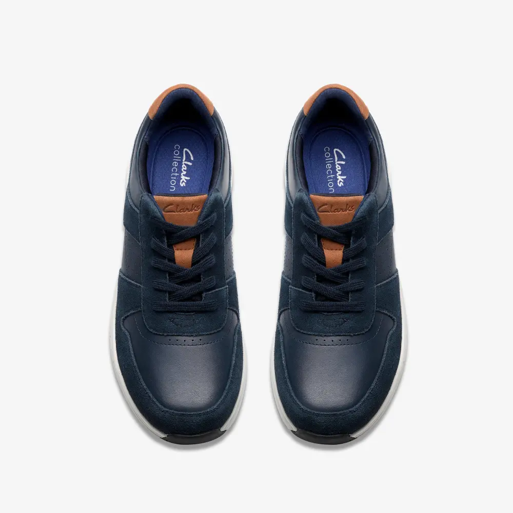 • Hochwertiges Obermaterial aus marineblauem Leder