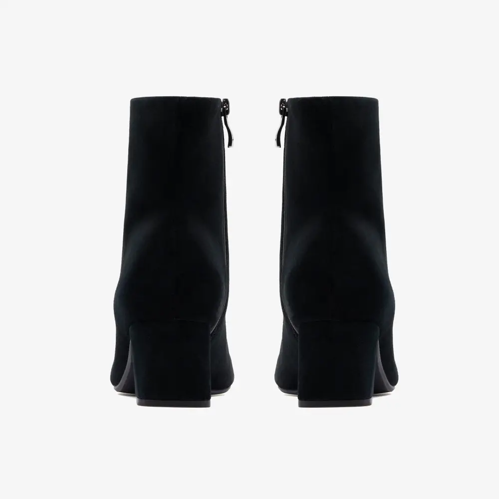 Der Fernie Zip ist ein vielseitiger Stiefelette, der sich perfekt für den Alltag und das Wochenende eignet. Gefertigt aus hochwertigem Veloursleder, besticht er durch eine elegante, eckige Zehenpartie und einen modernen, bequemen Blockabsatz. Das Contour Cushion-Fußbett sorgt für ganztägigen Tragekomfort, während die flexible Gummisohle natürliche Bewegungsabläufe unterstützt. Obermaterial aus hochwertigem schwarzem Veloursleder. Das Contour Cushion-Fußbett bietet unvergleichlichen Komfort. Der Reißverschluss an der Innenseite erleichtert das Anziehen. Die flexible Gummisohle bietet leichten Halt. Absatzhöhe: 60 mm.