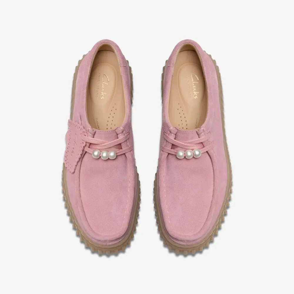 - Obermaterial aus hochwertigem, staubrosafarbenem Wildleder