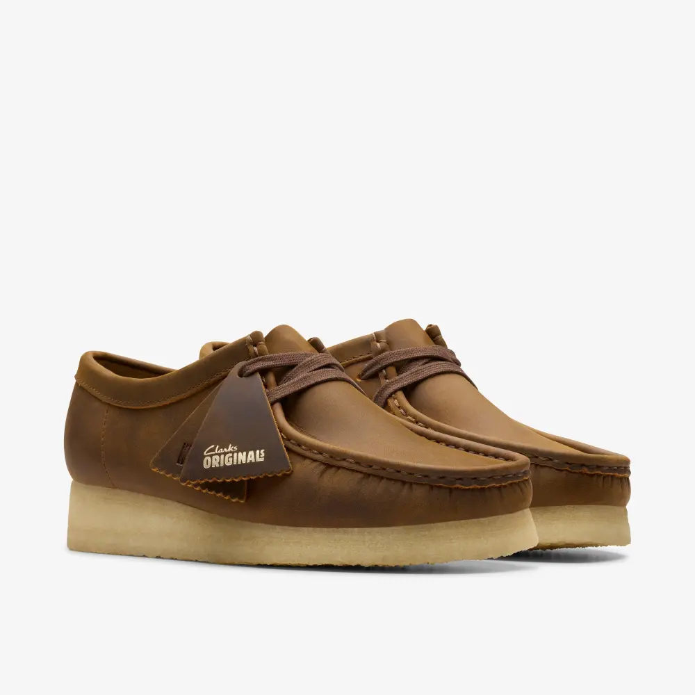 Unser legendärer Wallabee ist zurück – im klassischen Bienenwachs-Look! Obermaterial aus hochwertigem Bienenwachsleder. Glatte Kreppsohle aus Naturkautschuk. Abgerundet mit zwei Clarks Originals-Anhängern.